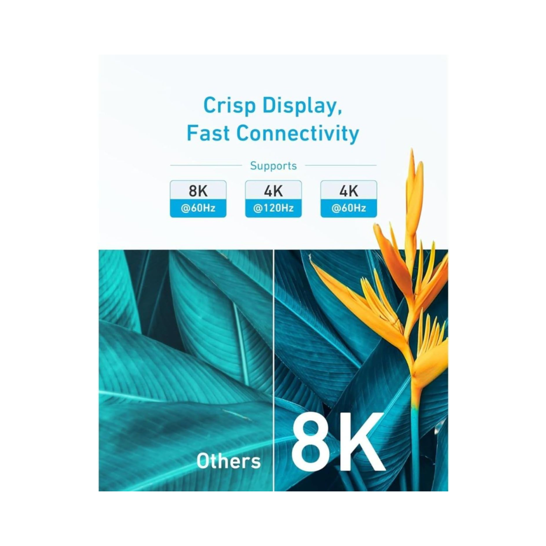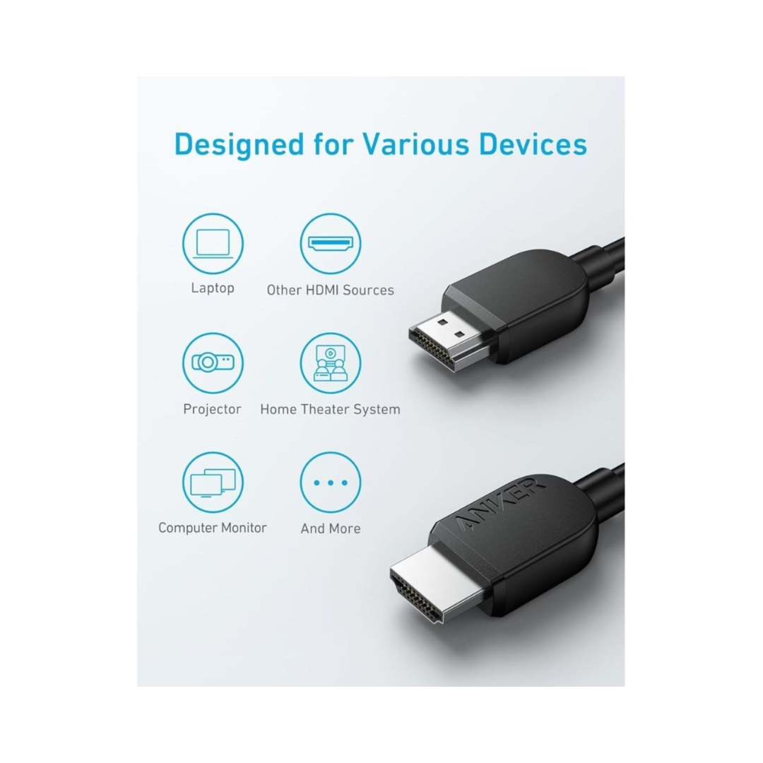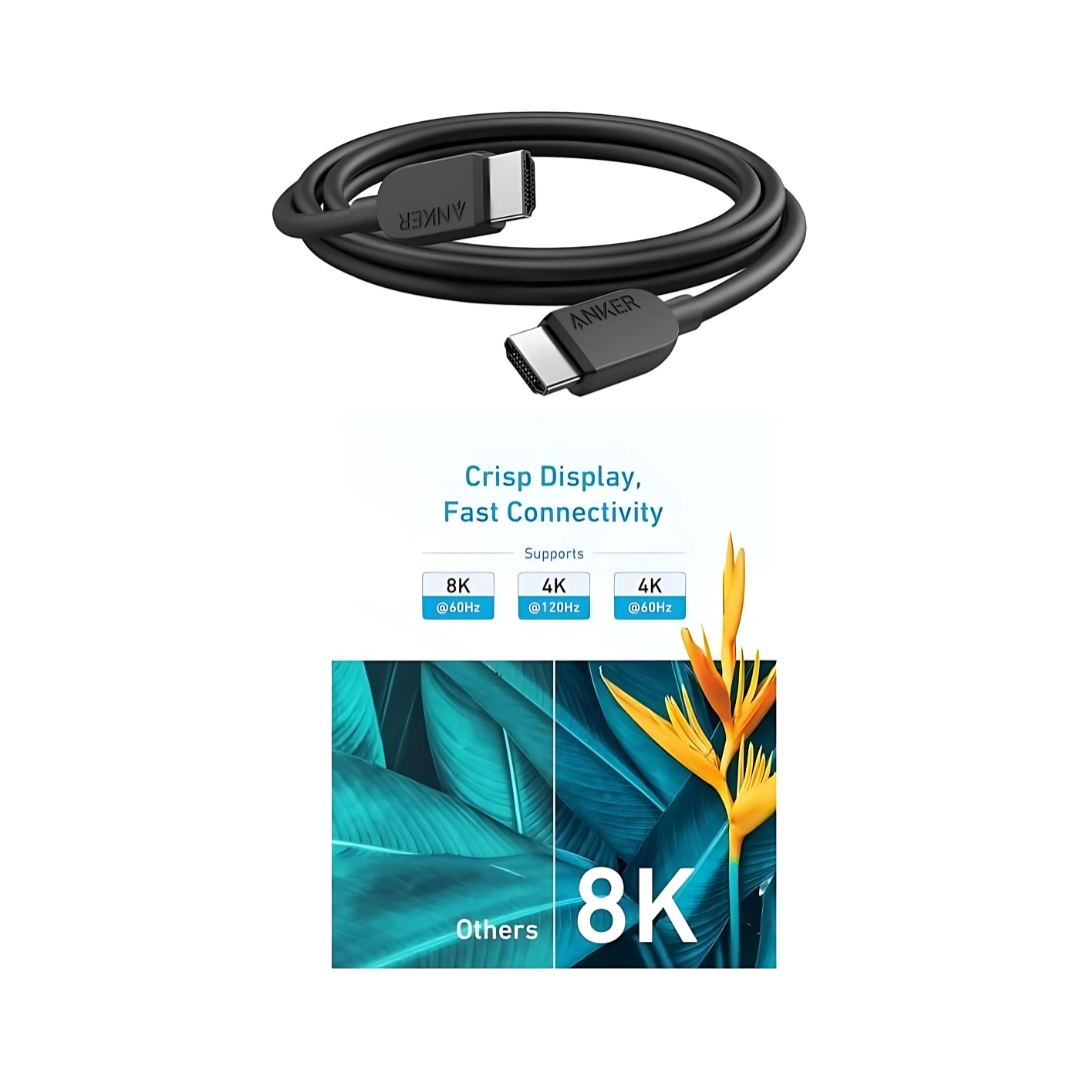 The Anker A8742H11 Superior Definition 8K@60Hz 6FT HDMI 2.1 Cable is a high-performance cable designed to deliver exceptional audio and video quality. It leverages the full capabilities of the HDMI 2.1 standard, supporting stunning 8K resolution at a 60Hz refresh rate and 4K resolution at a blazing-fast 120Hz. With a bandwidth of up to 48 Gbps, it ensures smooth, uninterrupted data transfer, making it ideal for high-end home theater setups, professional displays, and next-generation gaming consoles like the PlayStation 5 and Xbox Series X/S. The cable also supports advanced features such as Dynamic HDR, which optimizes color and contrast on a scene-by-scene basis, and Enhanced Audio Return Channel (eARC) for transmitting high-quality audio formats like Dolby Atmos.