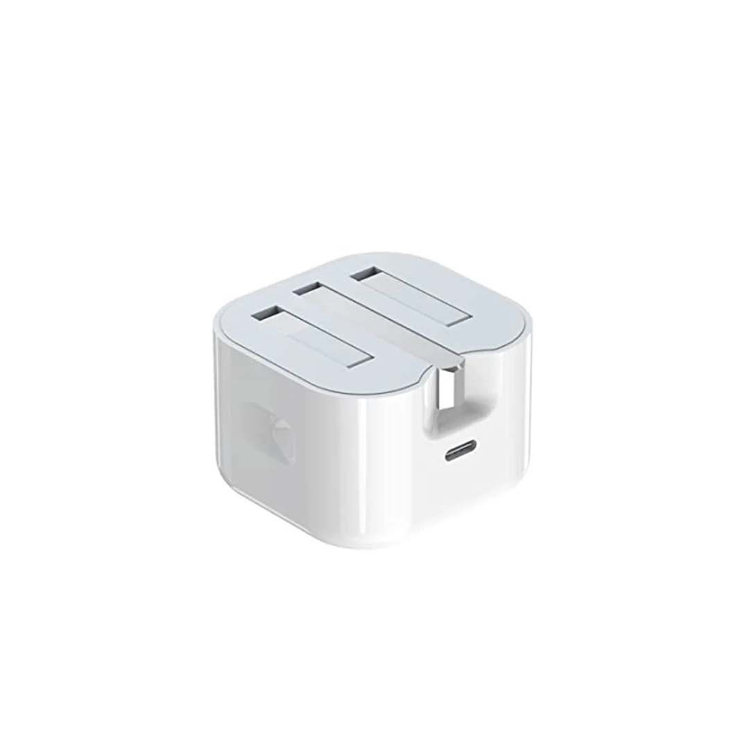 Apple 20W power adapter is a compact and efficient charging solution for your USB-C devices. With a powerful 20W output, it quickly replenishes your smartphone, tablet, or other compatible device’s battery. Its sleek design and folding pins make it easy to carry and store, making it ideal for travel or everyday use.