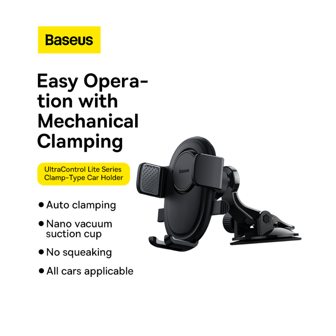 the Baseus Ultra Control Lite Series Clamp Type Car Holder Set (BS-CM022) is a car phone holder designed for convenience and stability. Here’s a summary of its key features: