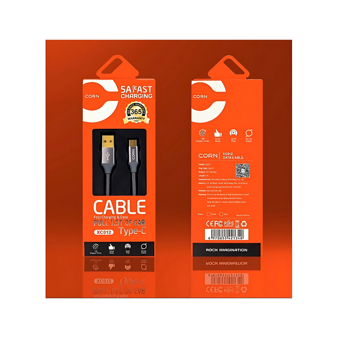 The Corn XC012 is a high-quality USB to Type-C data cable designed to provide fast charging and data transfer for your compatible devices.