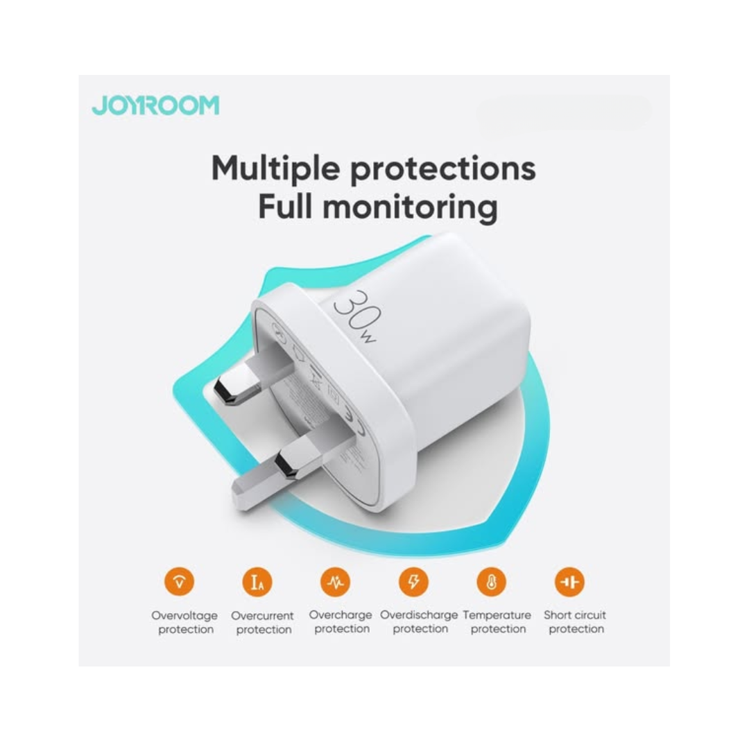 The Joyroom L-P301 is a powerful and portable fast charger that offers efficient and safe charging for your compatible devices. With its 30W output, it supports high-speed charging, allowing you to quickly top up your phone, tablet, or other devices.