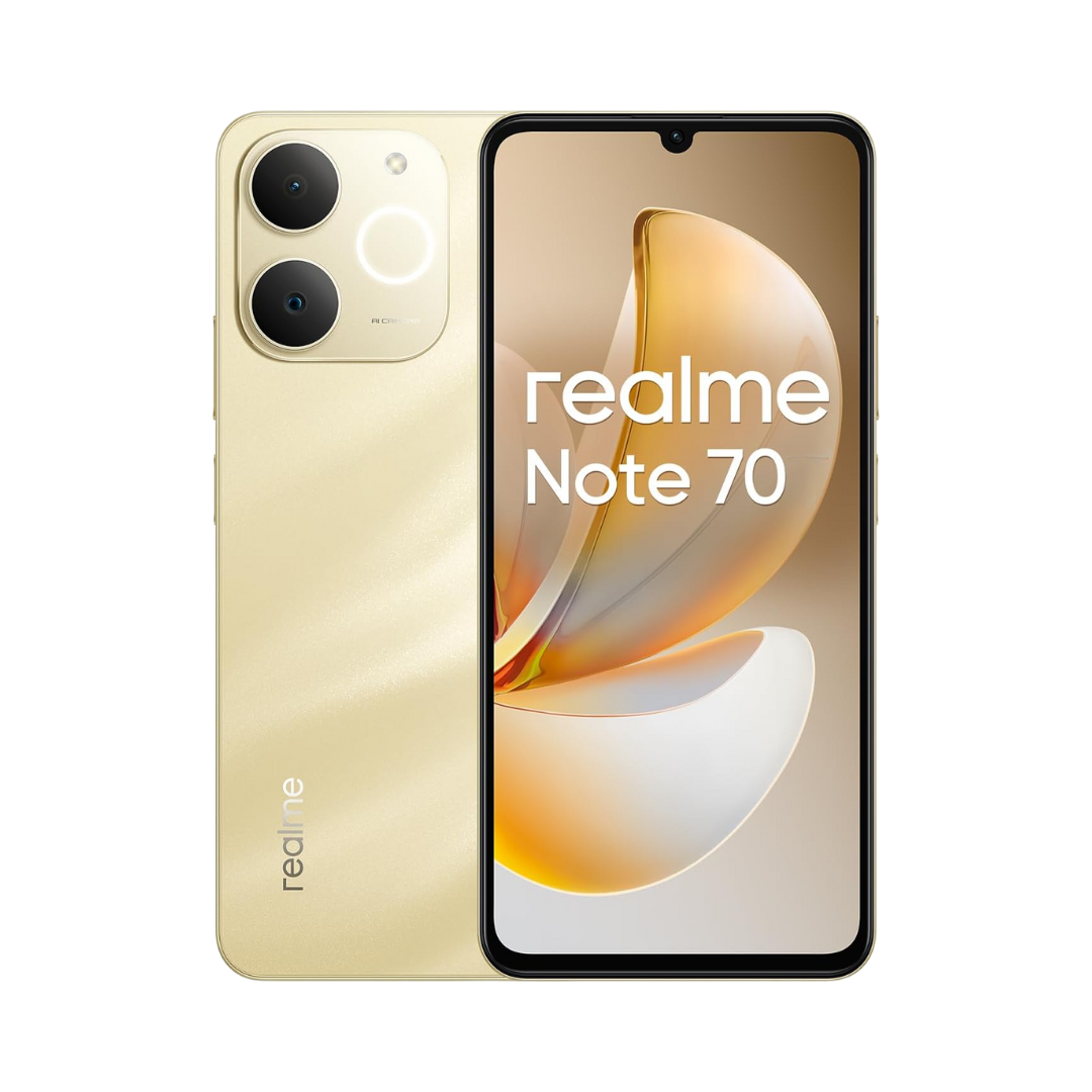 The REALME NOTE 70 4G is an entry-level smartphone designed for solid all-day performance and durability. It is powered by the Unisoc T7250 octa-core chipset, paired with storage configurations typically featuring 4GB or 6GB of RAM and 128GB of internal storage, which is further expandable via a dedicated microSD card slot. The phone runs on realme UI based on Android 15. Its key feature for extended usage is a massive 6300mAh battery, supporting 15W VOOC fast charging via a USB Type-C port. The build of the phone emphasizes resilience, boasting a 7.94mm ultra-slim profile with an IP54 rating for dust and splash resistance, and MIL-STD-810H military-grade shock resistance.