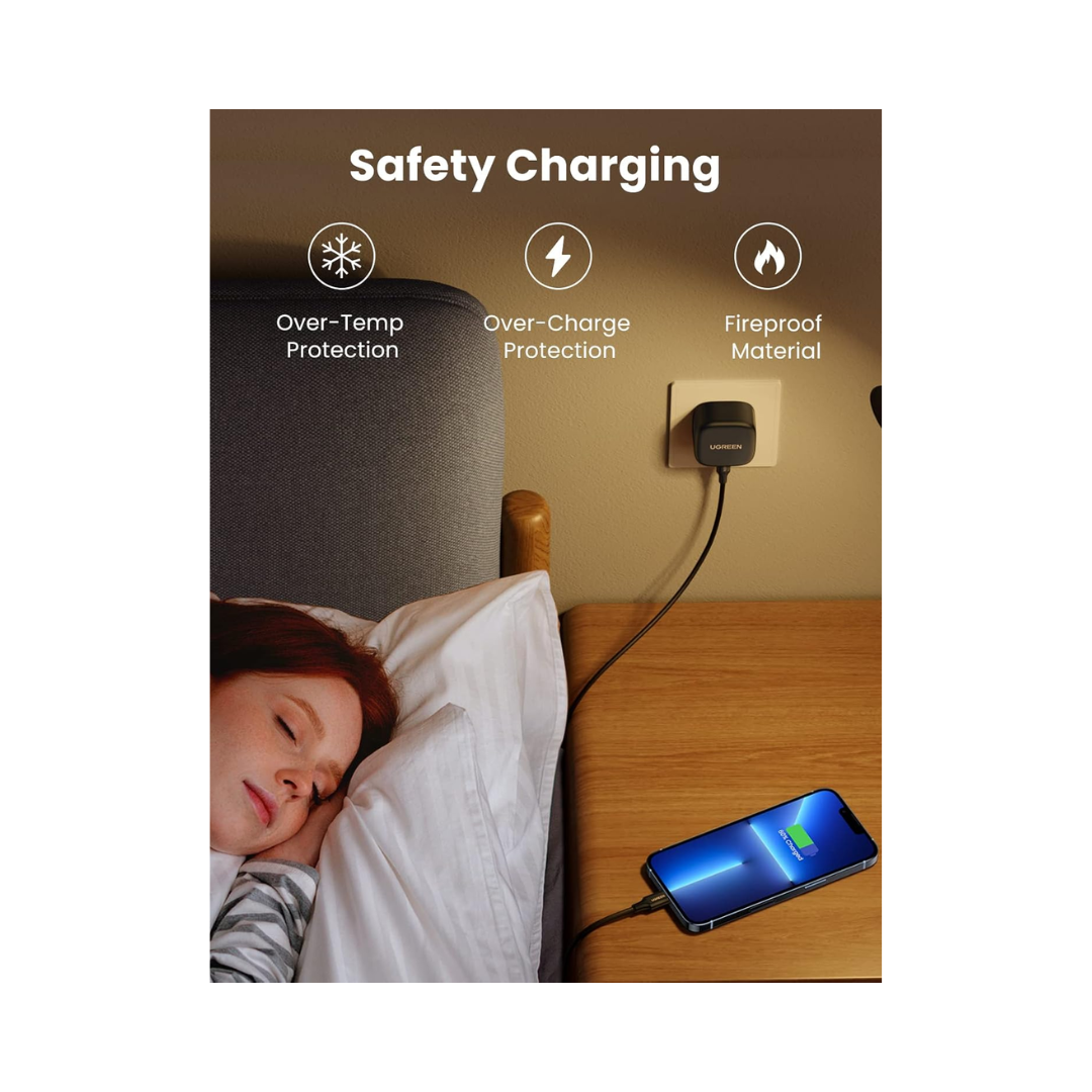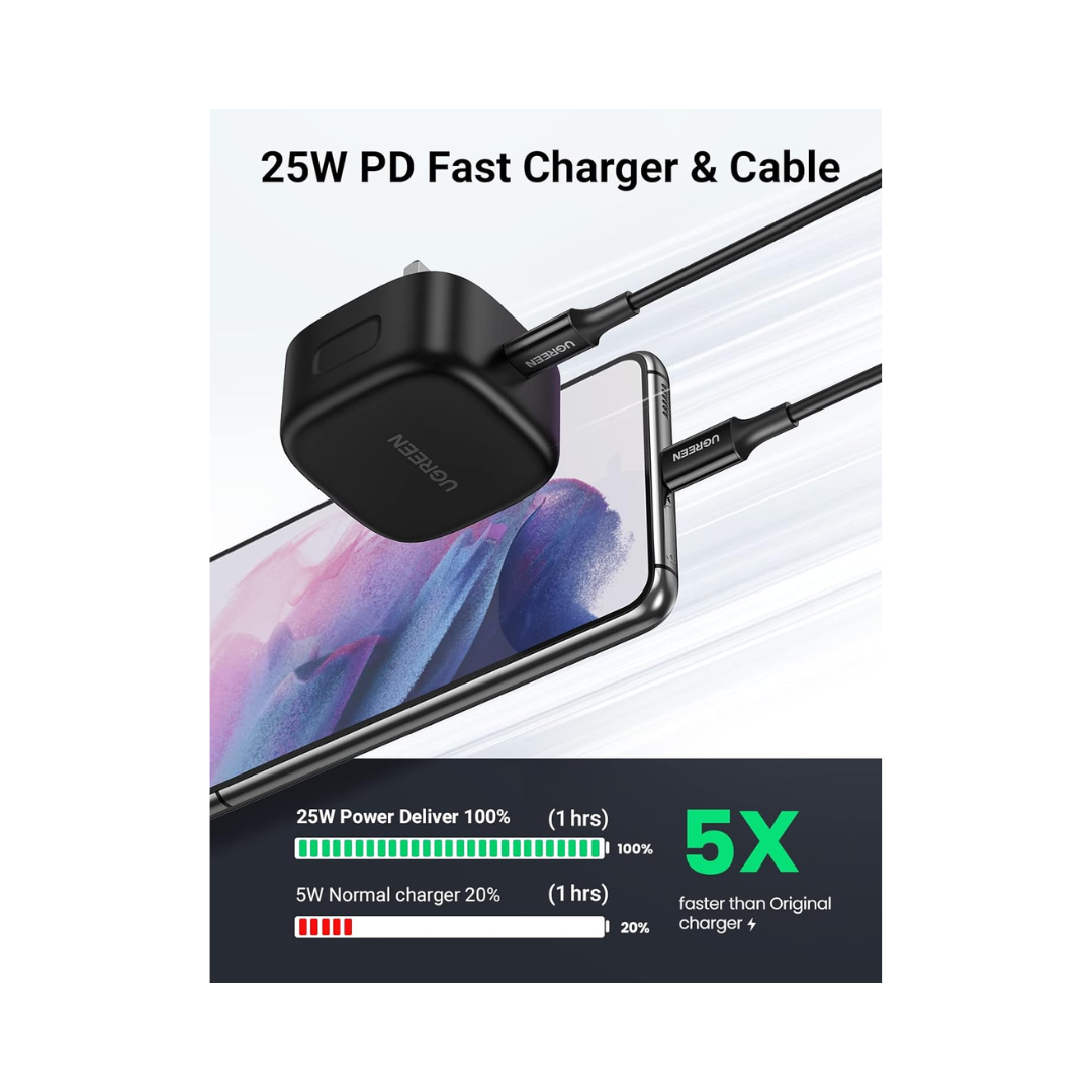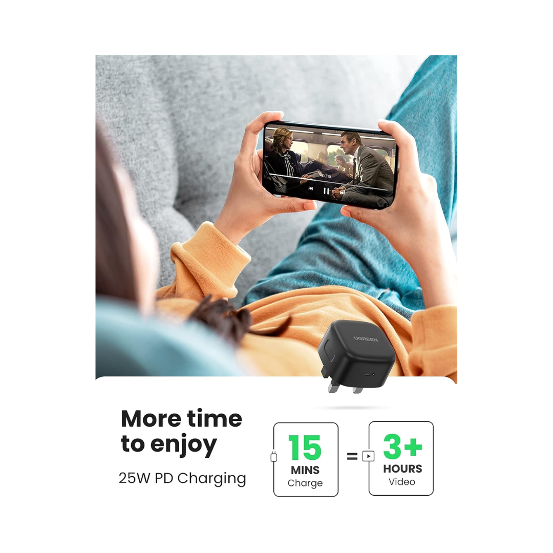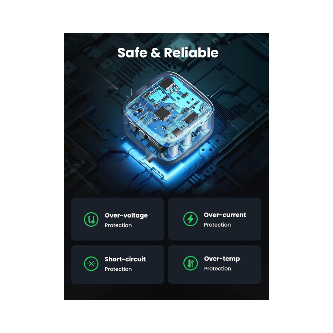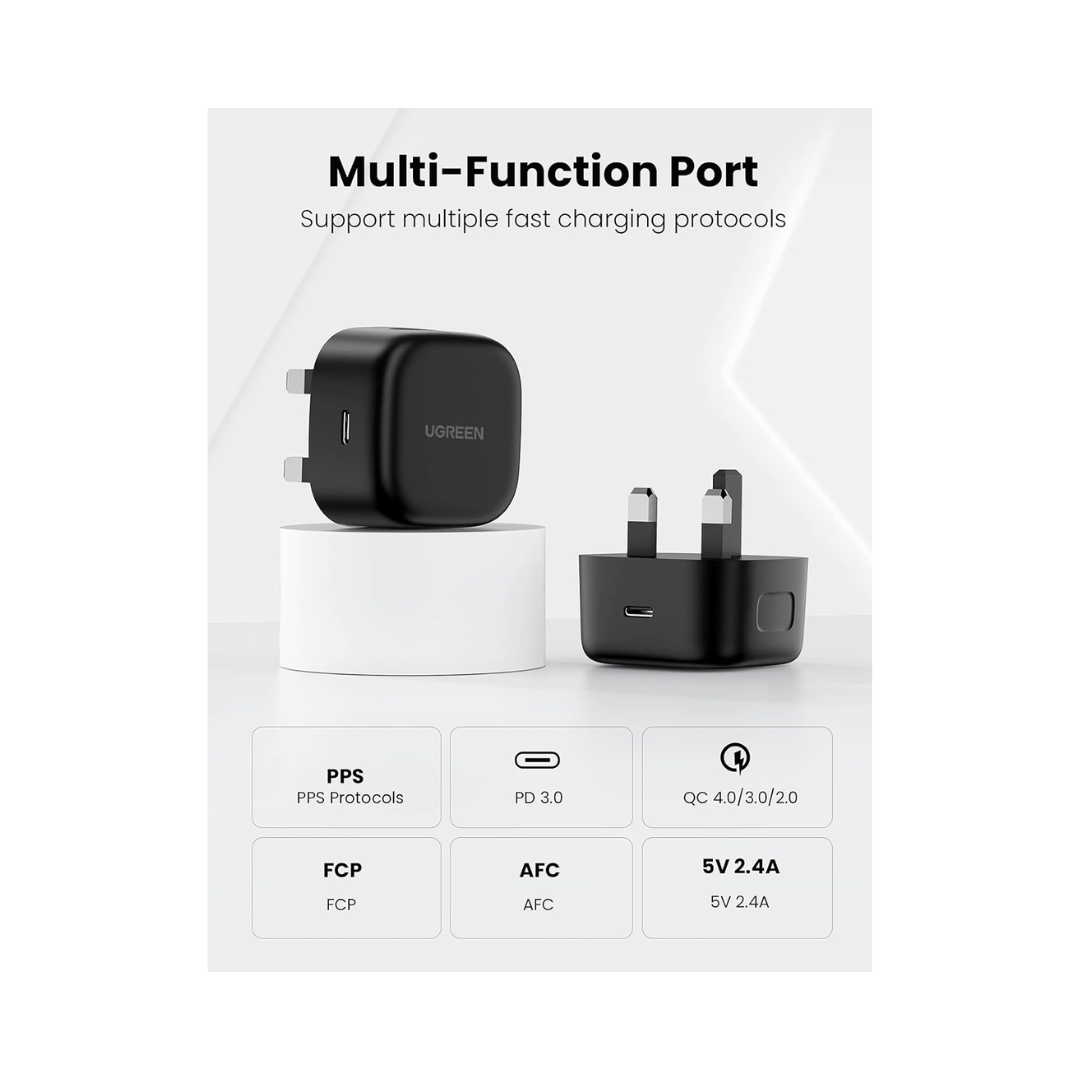 The Ugreen 25W Type C PD UK Fast Charger is designed to provide rapid and safe charging for a wide range of devices. It supports multiple fast-charging protocols, including Power Delivery (PD) 3.0, Quick Charge (QC) 4.0, and PPS (Programmable Power Supply), making it highly compatible with popular smartphones and tablets from brands like Samsung, Apple, and others. The charger’s intelligent chipset automatically adjusts the power output to ensure an efficient and stable charge, protecting your device from over-voltage, over-current, and short circuits. Its compact and lightweight design makes it an ideal travel companion, fitting easily into a bag or pocket without adding bulk.
