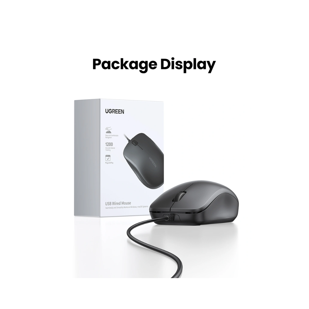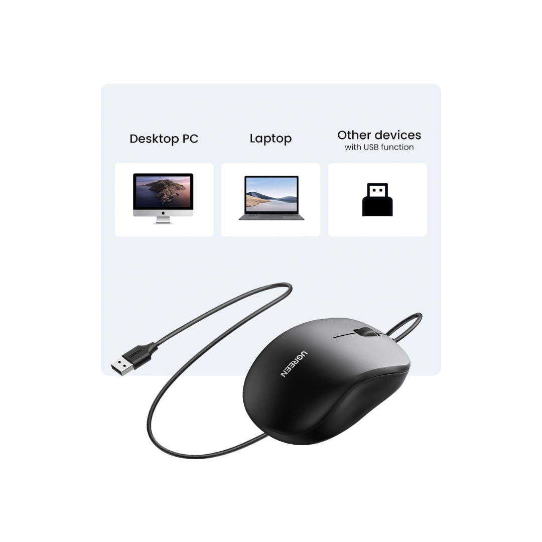 The UGREEN MU007 is a basic and reliable wired mouse designed for everyday use. It features a simple, three-button layout with a scroll wheel and is equipped with a 1200 DPI optical sensor, providing accurate and smooth cursor tracking. This makes it suitable for a wide range of tasks, from general web browsing and document editing to more precise work like graphic design or data entry. Its wired USB connection ensures a stable, lag-free experience, and its “plug and play” functionality means you don’t need to install any drivers or software; you can simply connect it to your computer and start using it immediately.