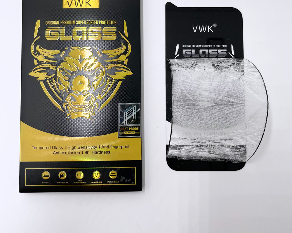 VWK Big Curved Original Quality Glass is a premium tempered glass screen protector designed to provide superior edge-to-edge protection for smartphones with curved displays. Its “big curved” design ensures that the entire screen surface, including the rounded edges, is shielded from scratches, drops, and daily wear and tear. This meticulous construction offers a seamless fit that preserves the original aesthetic of the device while ensuring maximum coverage and durability. The glass is engineered for high transparency, maintaining the screen’s vibrant colors and sharp resolution without compromising touch sensitivity, thus offering an unobtrusive and crystal-clear viewing experience.